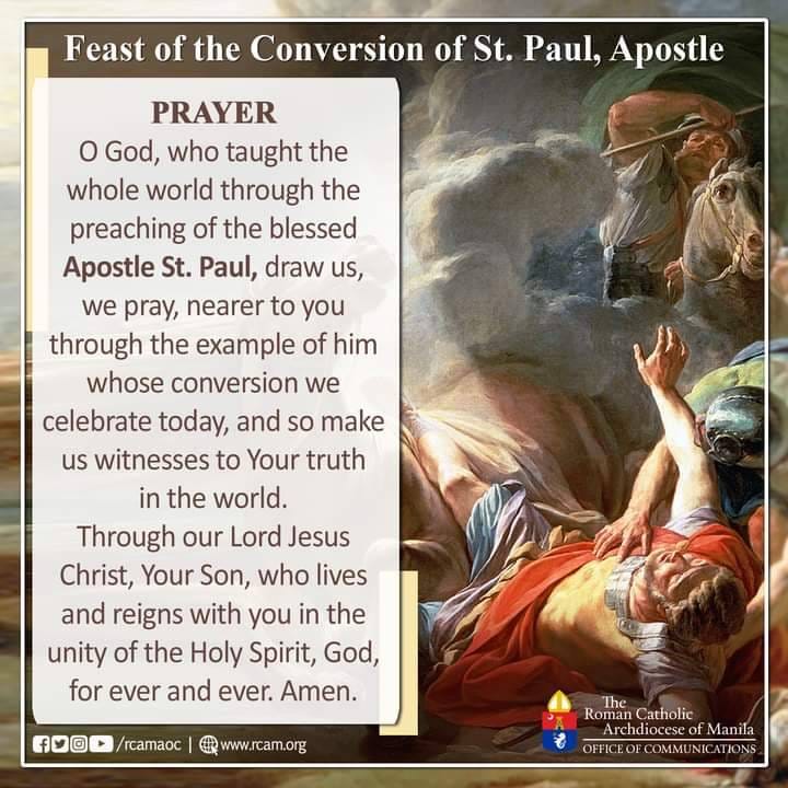 The Feast of the Conversion of Saint Paul was first celebrated in France in the sixth century and was introduced in Rome in the eleventh century and this miraculous event has been part of the Church calendar for more than 1500 years. St. Paul is the patron saint of missions, theologians, and gentile christians.