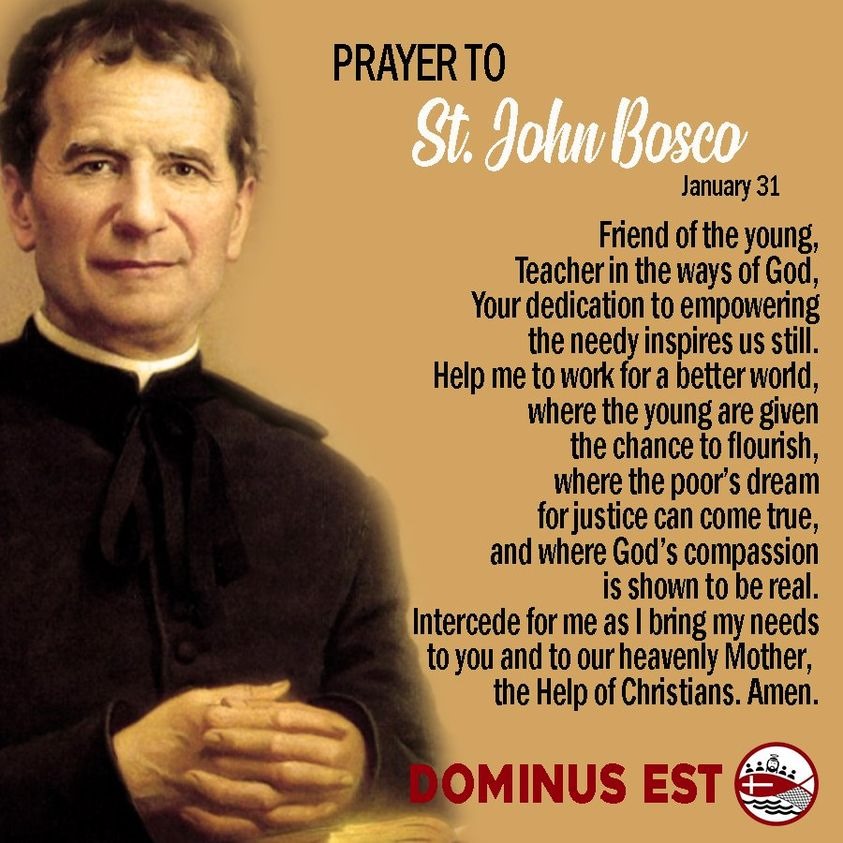 O God, who raised up the Priest Saint John Bosco as a father and teacher of the young, grant we pray, that, aflame with the same fire of love, we may seek out souls and serve you alone.